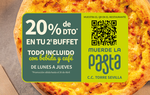 Muerde la Pasta es una cadena de restaurantes de inspiración ítalo – mediterránea con formato buffet, donde la propuesta de “absolutamente todo incluido” te permite disfrutar de la calidad y variedad de más de 150 recetas. Pastas, pizzas saladas y dulces, focaccias, gratinados, ensaladas, guarniciones, carnes, pescados y postres se elaboran a diario con ingredientes frescos y de alta calidad, ofreciendo una experiencia gastronómica italiana ideal para todo tipo de público. Y los más peques podrán divertirse gratis en el parque infantil Pasta Park.